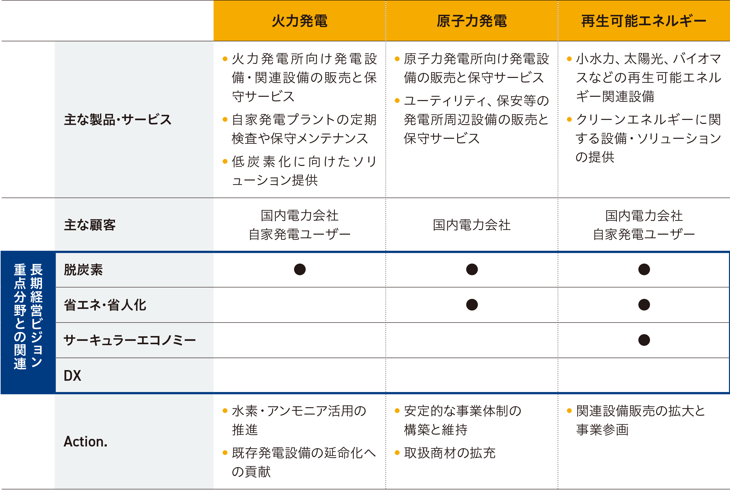 発電方式毎の事業概要と注力施策(Action)